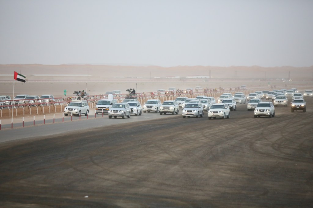 In the seventh round, “Hizam”, owned by Hamad Qanazel Al Ameri, secured first place, outperforming his competitors and snatching the title with a time of 4:28:53 minutes. “Shaheeniya”, owned by Mohammed Rashid Al Mansouri, presented its owner, Mohammed Rashid Al Mansouri, with the second title after winning the eighth round with a time of 4:29:33 minutes.
